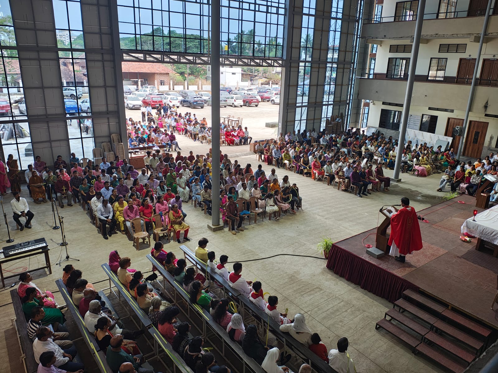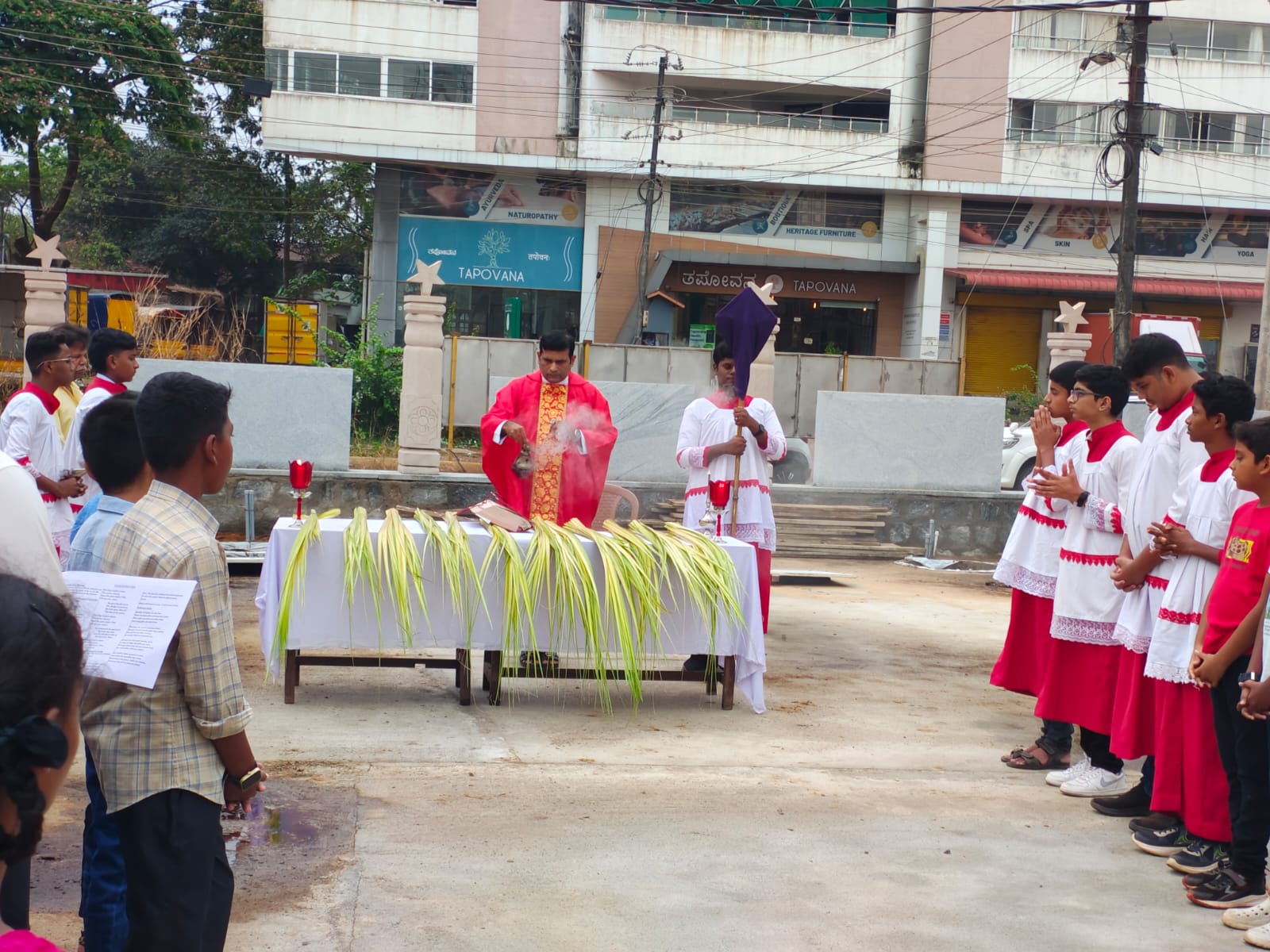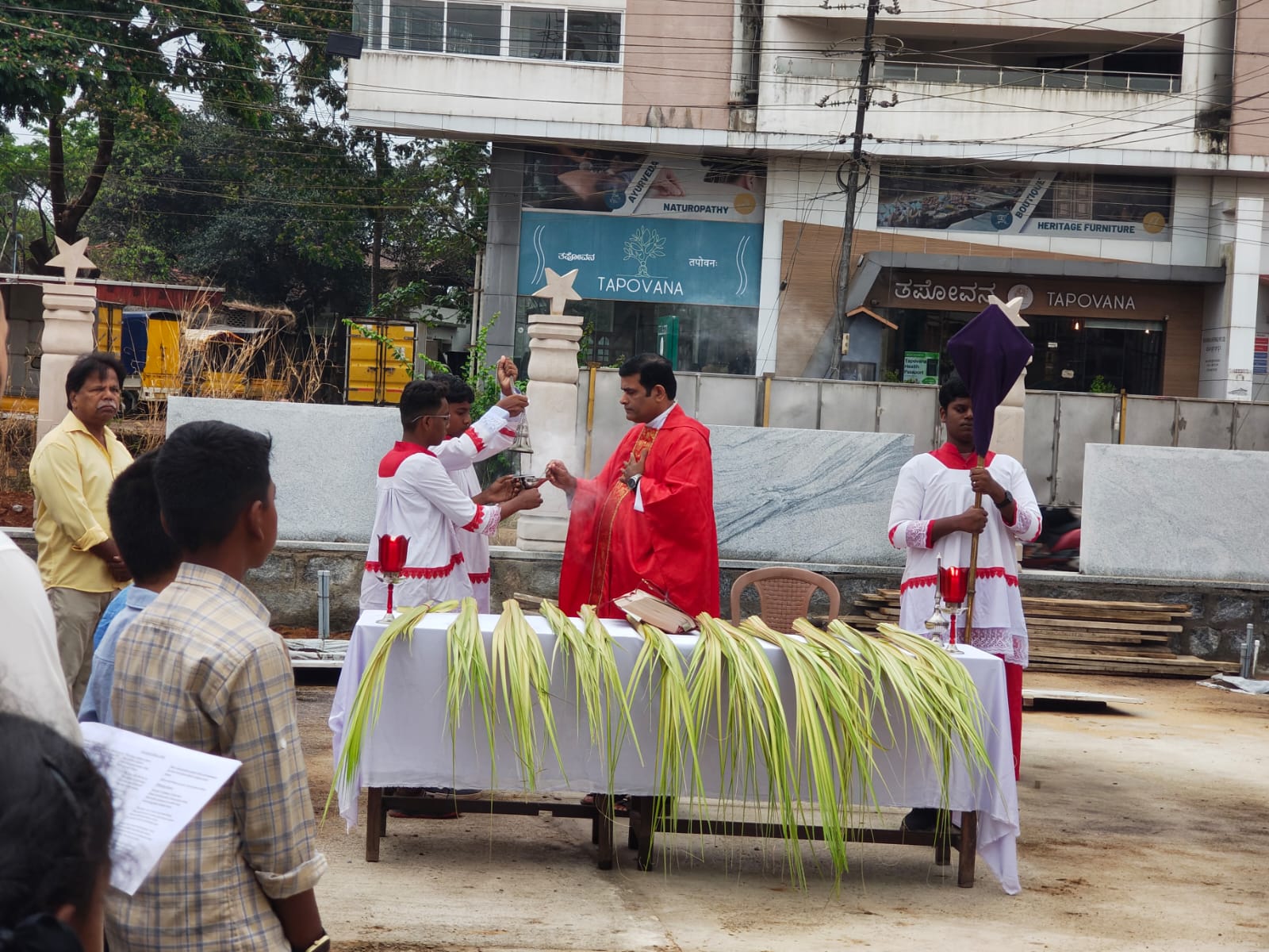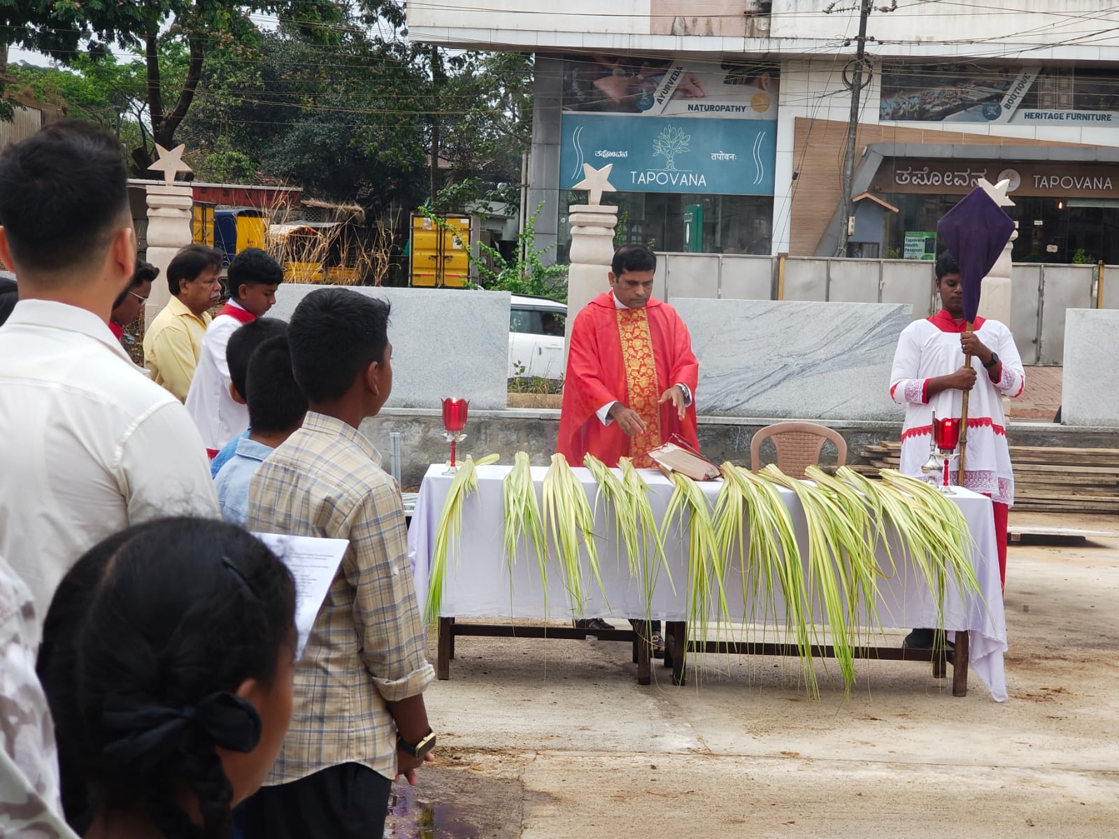 The faithful gathered in large numbers at Christ Church Manipal this morning at 7:45 AM to commemorate Palm Sunday, marking the beginning of Holy Week in the Christian calendar.